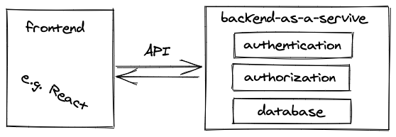Firebase (by Google), one solution for a backend-as-a-service, offers a database, authentication and authorization as a backend out of the box. A developer is only left with implementing the frontend application (e.g. React application) which needs to connect to this backend-as-a-service.