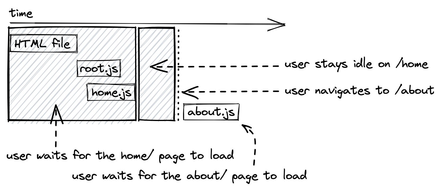 If you recap how traditional websites work, you will find out that it’s quite similar with code splitting enabled SPAs. For a traditional website, every time a user navigates to a new route a new HTML file (with optional CSS, JavaScript, and other asset files) is loaded. For the SPA with code splitting on a route level, every navigation leads to a newly requested JavaScript file.