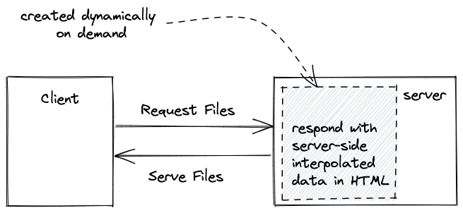 Now, after a blog post has been created, how does a server send a HTML file for a blog post if the data for it isn’t static, but instead stored in a database? That’s where the principal of server-side rendering (not to mistake with server-side routing) comes into play.