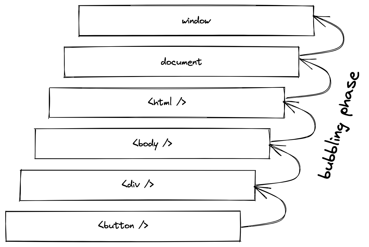 When speaking about event bubbling in JavaScript, one cannot hide that there exists the concept of event capturing too. Actually both happen one after another: When a user interacts with an element, the DOM API traverses down the document (capturing phase) to the target element (target phase), only then the DOM API traverses up again (bubbling phase).