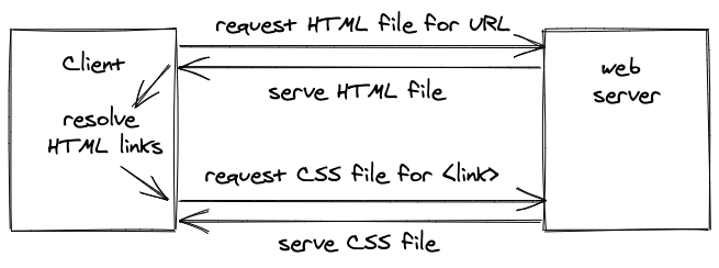 <p class="danger">Red text as defined in the external CSS file.</p>If a browser asks a web server for the HTML of an URL, the web server sends back the HTML file which may include HTML tags that link to other resources like CSS or JavaScript files. For every link, another request is made to the web server to retrieve the files.