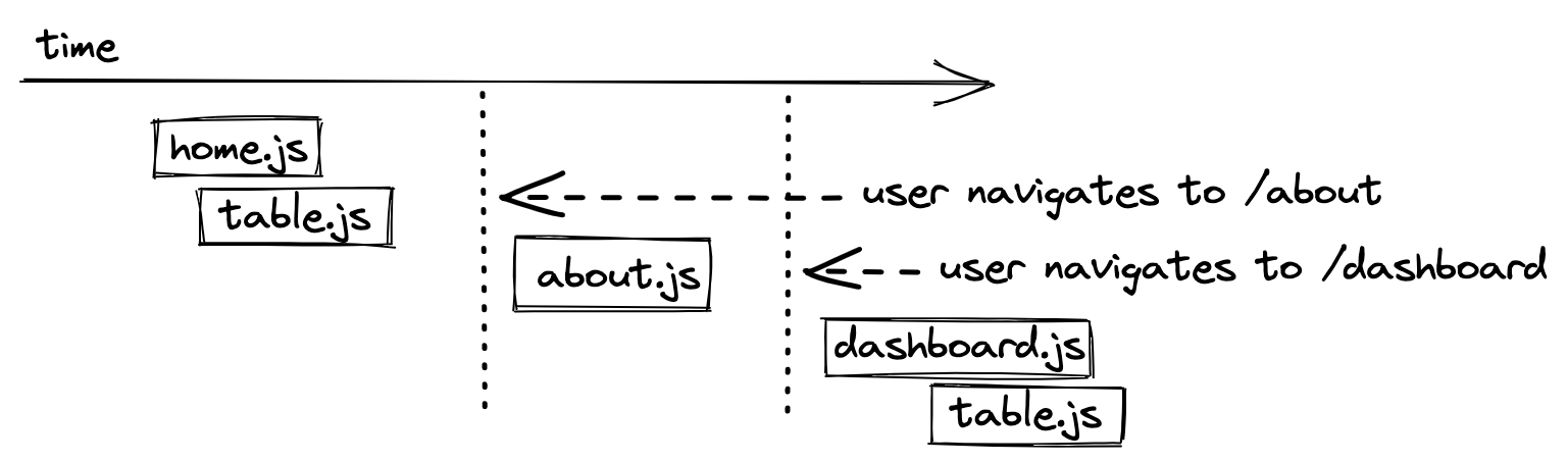 If you recap how traditional websites work, you will find out that it’s quite similar with code splitting enabled SPAs. For a traditional website, every time a user navigates to a new route a new HTML file (with optional CSS, JavaScript, and other asset files) is loaded. For the SPA with code splitting on a route level, every navigation leads to a newly requested JavaScript file.