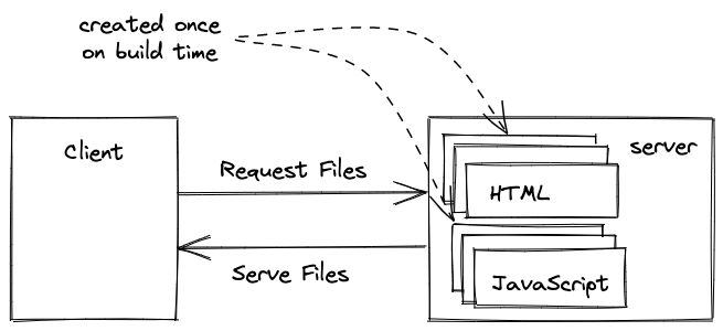 Traditional websites use static files from a web server to be rendered on a browser. As we have learned, there is no involvement of an application server and no involvement of server-side rendering. The approach of a traditional website is pretty straightforward, because a web server just hosts your files and on every URL a user visits your browser makes a request to get the necessary files. So what if we could use React for static files?